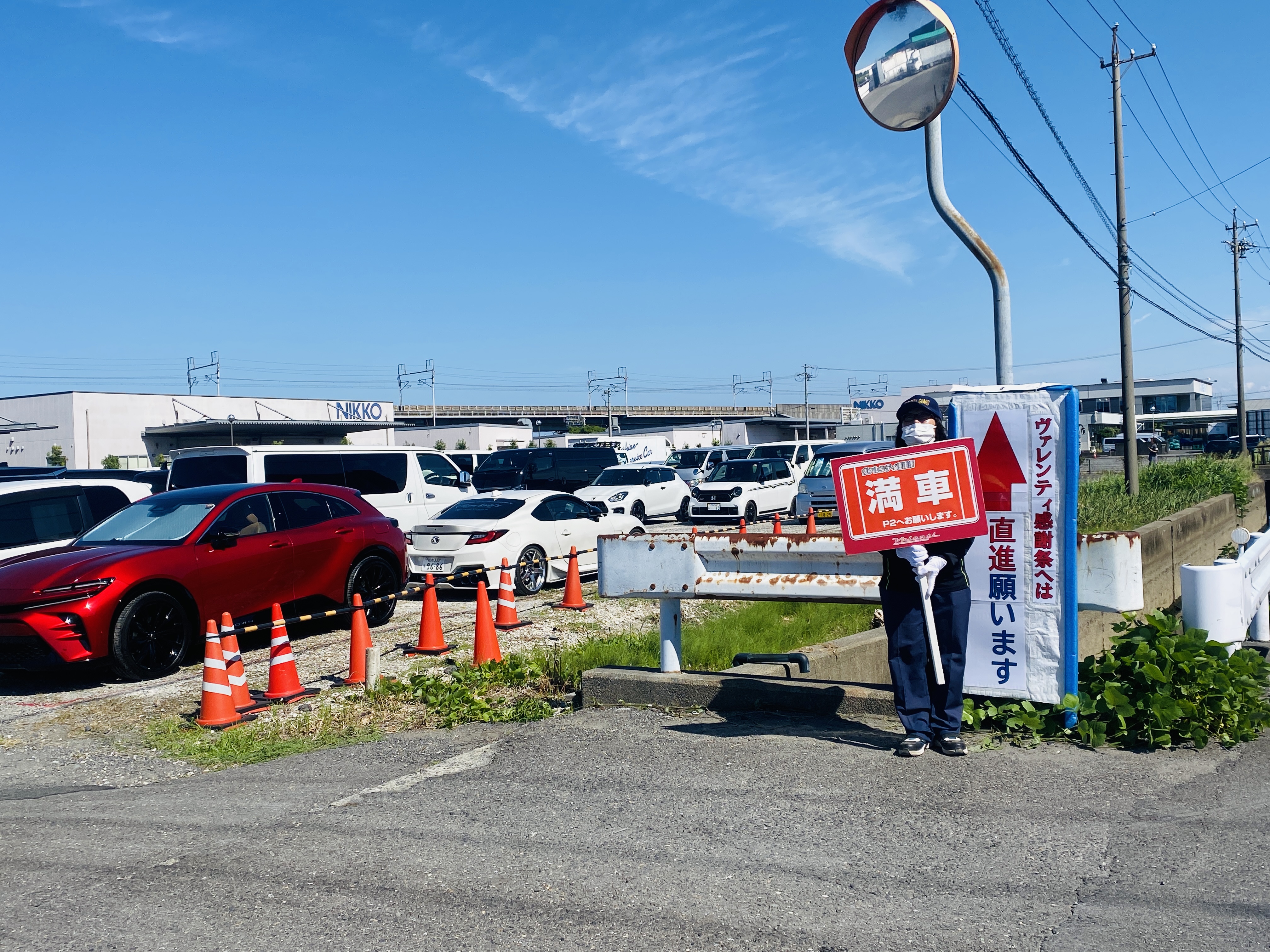 会場の近くにある第1駐車場はイベント開始と同時にすぐに満車となりコラント様のスタッフさんと弊社隊員と連絡を取りながら第2駐車場へ案内する業務、駐車場内では空いているスペースへ案内する業務を安全に行いました。